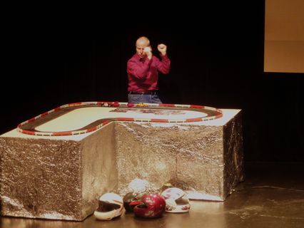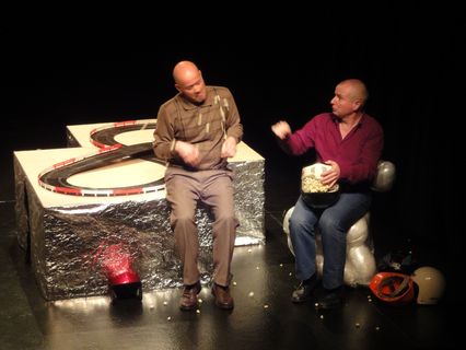 "Zwei Männer im Hobbyraum. Sie erzählen sich aus ihrem Leben, tauschen Banalitäten aus, machen kleine Geständnisse, spielen mit der Auto-Rennbahn. Sie sagen sich nicht alles. Trotz der Vertrautheit.